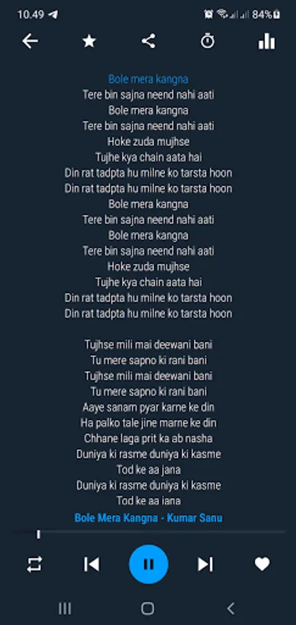 You can play old hindi romantic songs with lyrics. Select one of your favorite songs and play. Many features allow you to enjoy this application, sleep mode and equalizer.