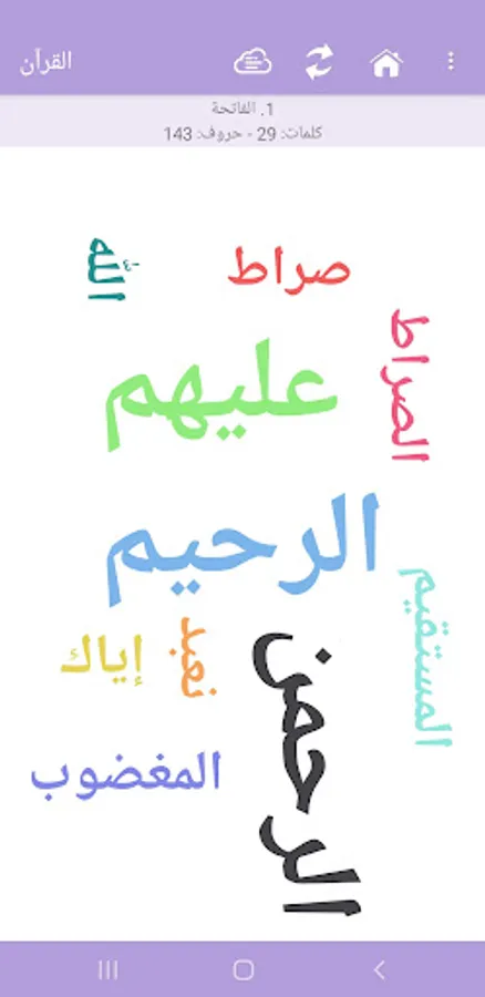 KEYWORDS : Quran, Numbers, Surahs, Verses, Words, Letters, Abjad, Tilawah, Muqatta'at, Juz/Hizb/Rubu , Graph, Cloud, List, Search, Sort, Information