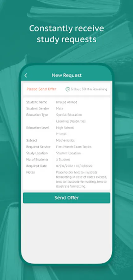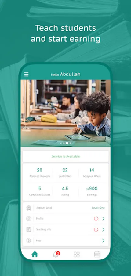 Interactive educational platform for private classes, connects students and teachers where students can send his request then receive competitive offers from teachers, which allow the student to compare and choose the most suitable offer and teacher, in addition the platform offers continuance discounts to offer support to students and the educational journey.