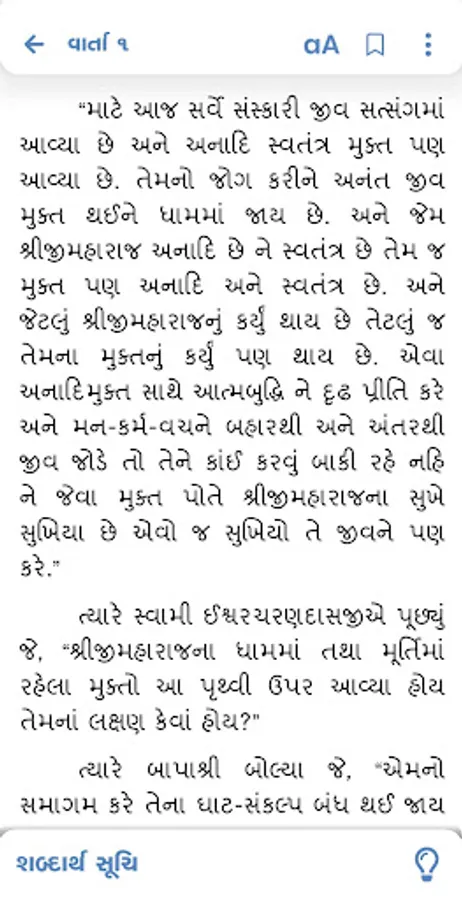 Whereas discourses delivered by swahsiddha Anadi Mukta like Bapashri are our holiest and best Smrutis. The contents of the Vachanamṛt are axiomatic; whereas the sermons delivered by Bapashri have to be supported by the Vachanamṛt. Bapshri says, “My sermons are in the place of a grain, whereas Vachanamṛt is in the place of meal.”