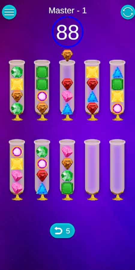 Sort jewels is a fun puzzle game! Try to sort colored jewelry in tubes so that all jewels of the same color remain in the same tube. Difficult but relaxing game to exercise your brain!
