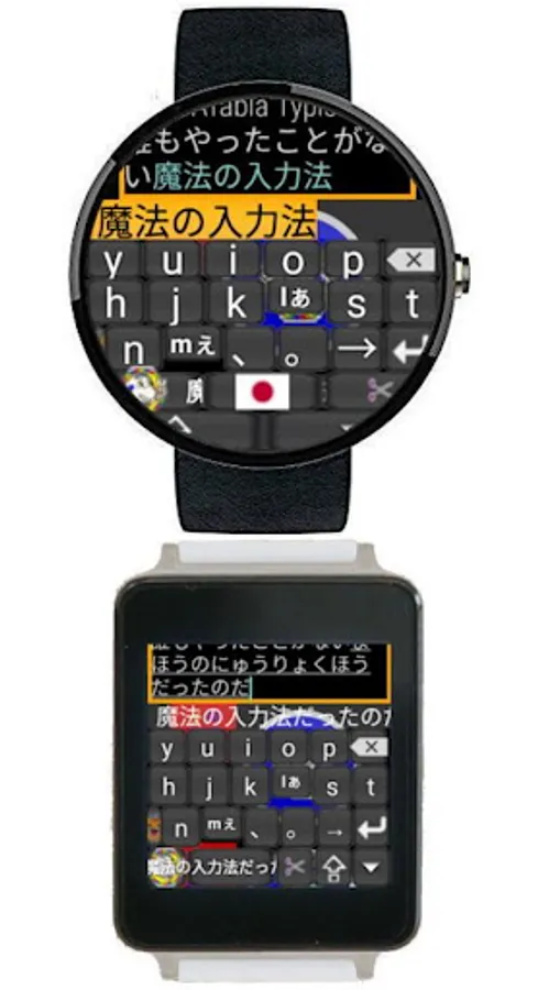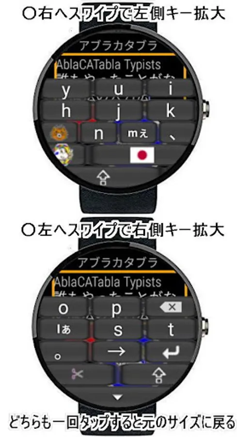 AblaCATabla Typists is a premium version of the former AblaCATabla Typist (Japanese / English IME) compatible with Wear OS by Google based Smart Watch. It can be used as a Japanese or English IME with Smart Watch and Android smartphone compatible with Wear OS by Google (formerly known as Android Wear). The installed AblaCATabla Typists can be used independently on the Watch side / Smartphone side. If you are connected to a smart phone with a smartphone's Wear OS by Google application, you can also enter the Watch by operating the smart AblaCATabla Typists by switching the Watch Typists to Connect mode.