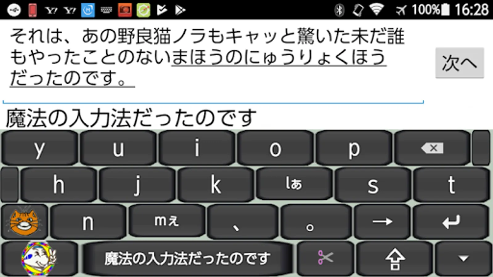 ① Input the conversion key (2 Hiragana characters). (Result: The application icon / key changes to "almost" display)