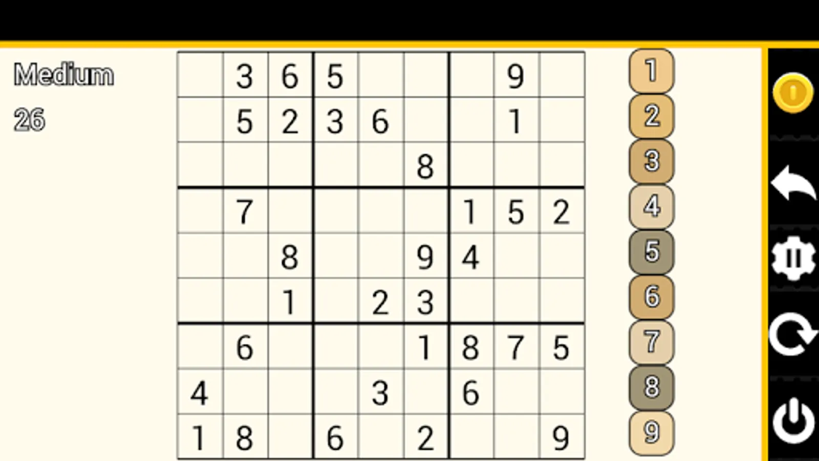 Sudoku is a puzzle game designed for a single player, much like a crossword puzzle. The puzzle itself is nothing more than a grid of little boxes called “cells”. They are stacked nine high and nine wide, making 81 cells total. The puzzle comes with some of the cells (usually less than half of them) already filled in.