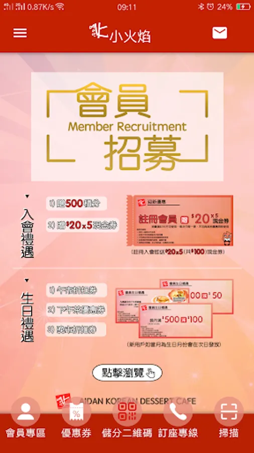 使用此手機程式登記註冊成為”小火焰”會員,您可以獲得下列優惠: