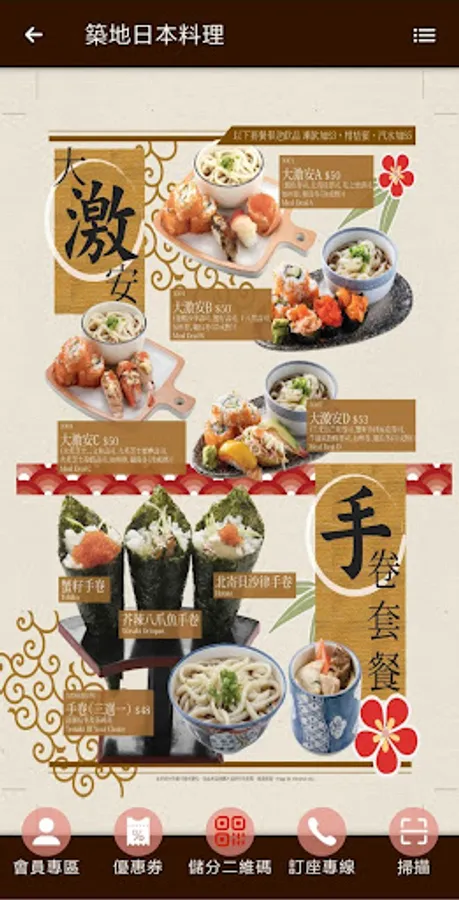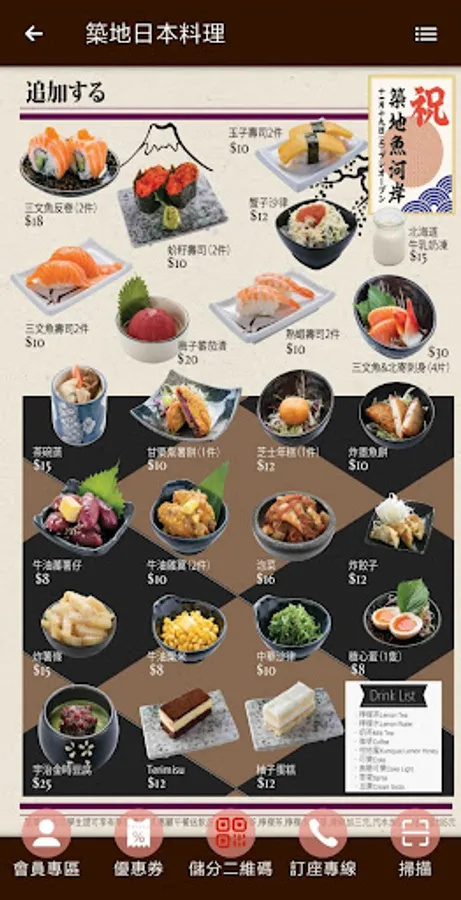 使用此手機程式登記註冊成為”日本築地料理”會員,您可以獲得下列優惠: