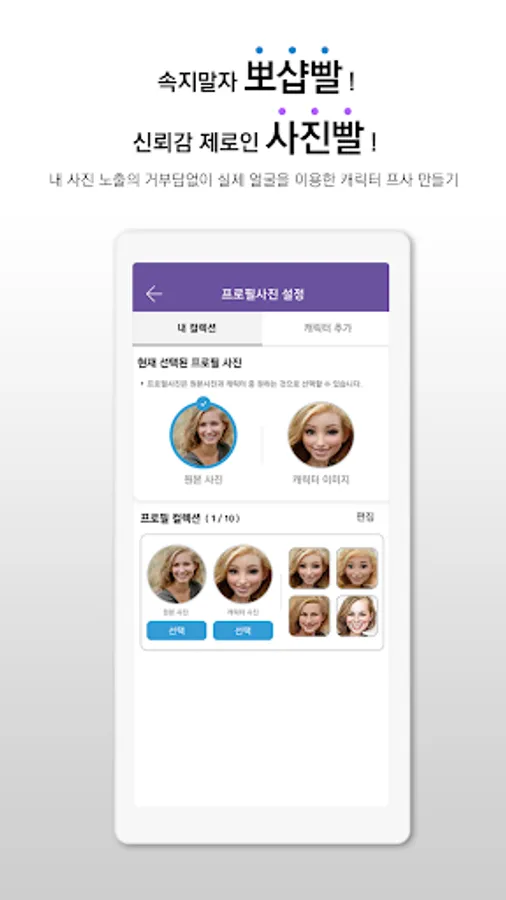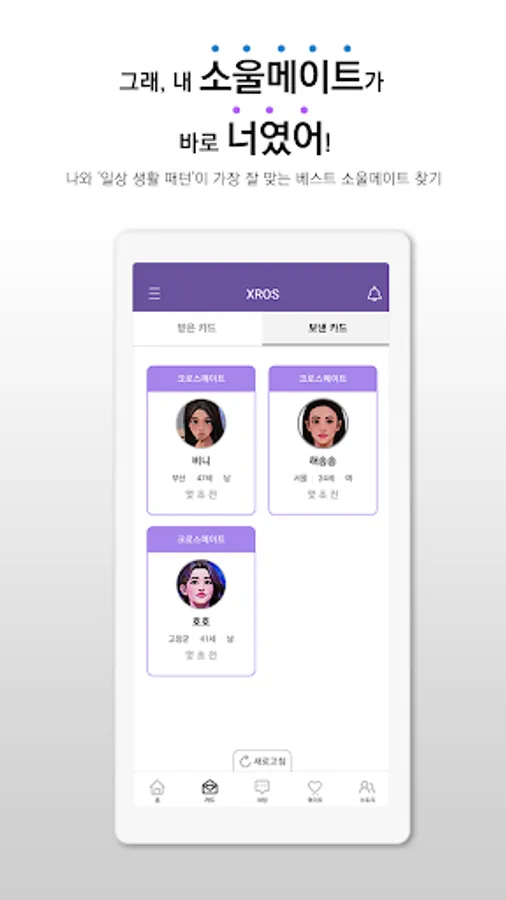 3. XROS uses a character conversion program (toon app) to provide 4 unique character profile pictures, thereby solving the problem of the burden of exposing real photos and registering false photos.