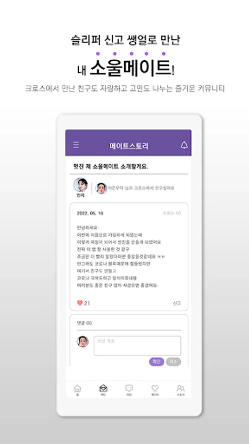 If you talk with various friends on the Mate Story bulletin board, such as daily stories, funny mistakes, enjoyable experiences, and small worries, you may meet a story friend who agrees with you.