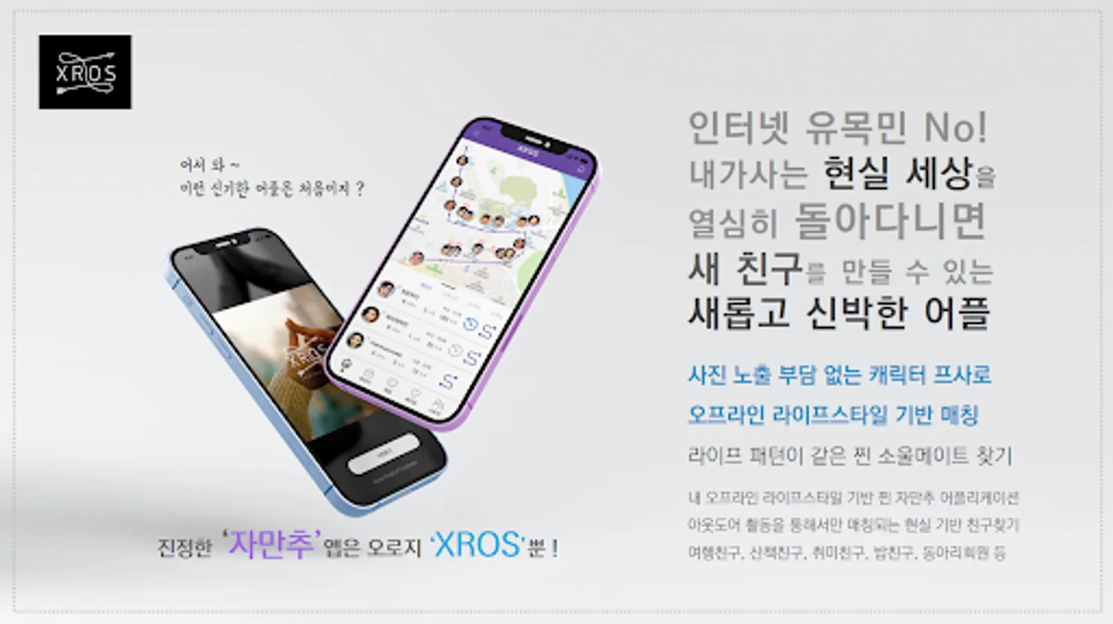 XROS is a new and amazing real Jamanchu app that finds travel friends, everyday friends, restaurant friends, and steamed friends that fit your offline location-based lifestyle.