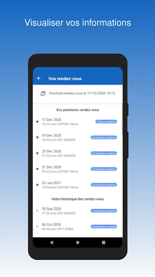 MyNadis Doctor allows doctors to follow patients at the Nadis base. Track and access your teleconsultation appointments from the app.