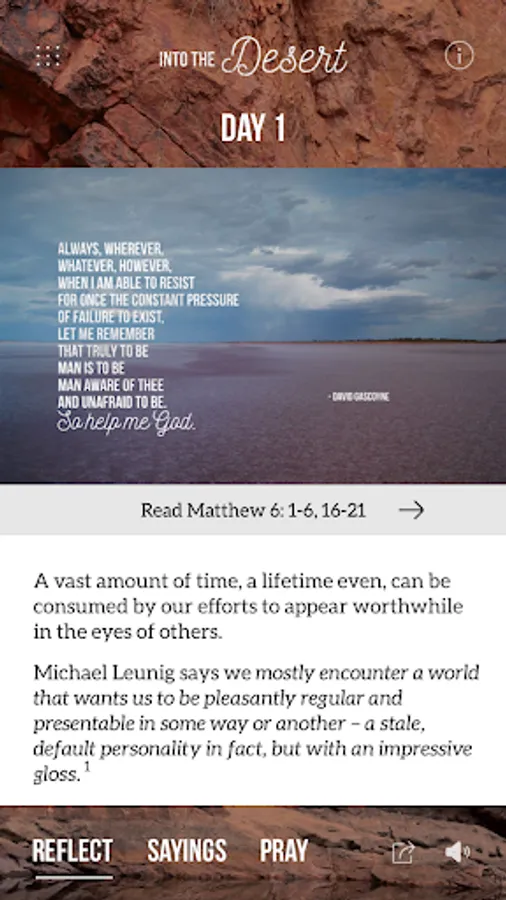 This Lent Bible study contains 40 days of Bible readings, reflections and prayers that will take you on a spiritual journey into the wilderness.