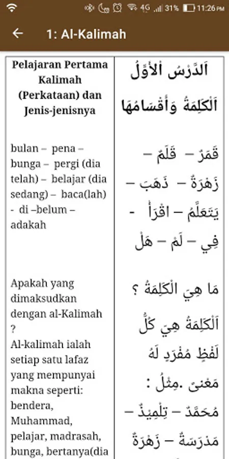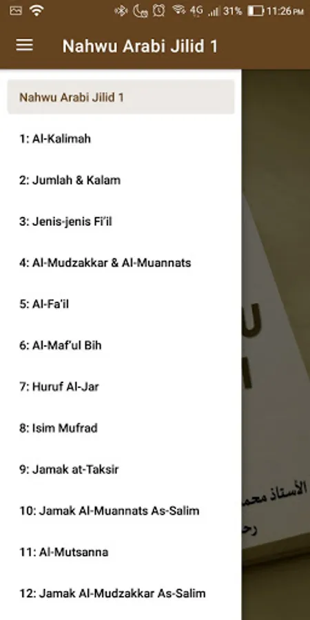 This book contains basic Nahwu Arabic lessons and examples of I'rab. It contains 17 lessons in volume 1.