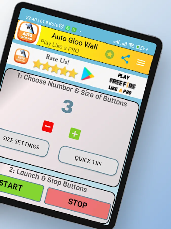 Auto Gloo Wall App is an auto clicker app for all new players looking for how to drop fast Gloo Wall in One tap, by increase Gloo Wall Speed, So you can play like a PC gamer.