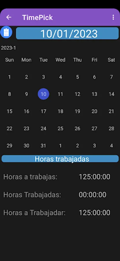 The app adds and saves the days and hours worked and subtracts from the total hours to work