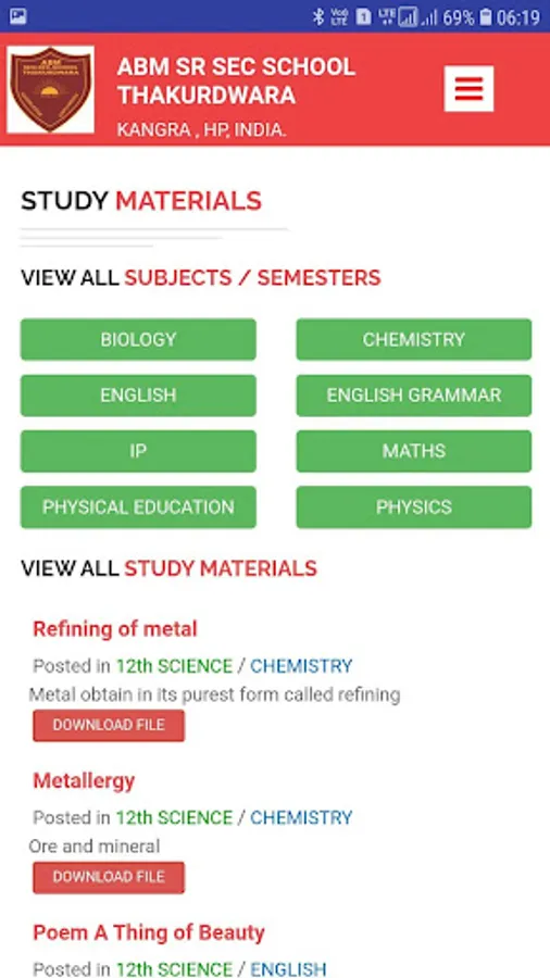 ABM is a co-educational. English medium HPBOSE affiliated school. It is located at Thakurdwara. 5 kms from Palampur on Pathankot Manali Highway. Established in 1981. Quality education is the primary concern of the management. The campus according to the requirement is also expanding every year. The school possesses all the infrastructure and facilities necessary for a modern academic institution. Apart from the concrete structure. the school also preserves lush green environs.