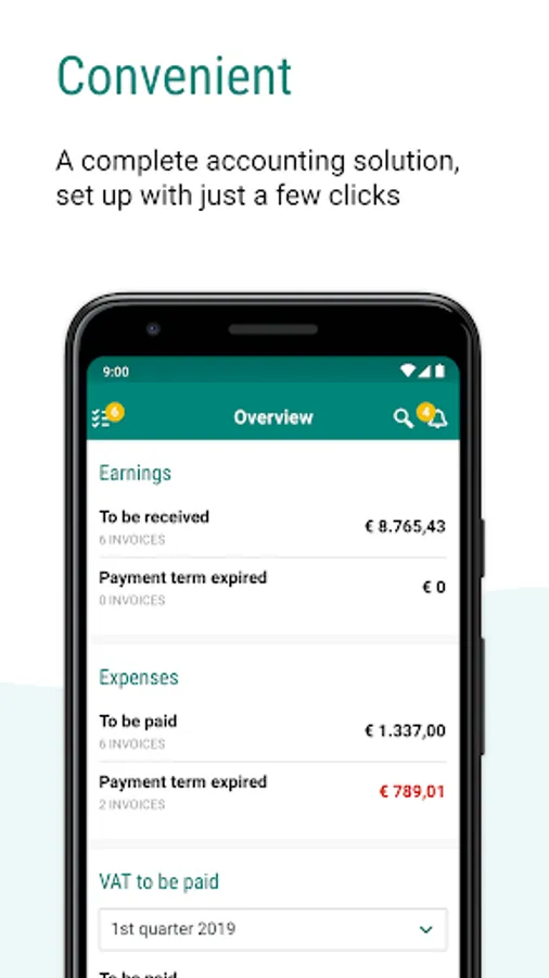 With Bookkeeping by ABN AMRO you can manage your finances in one place. You can send invoices, scan receipts and everything will be added to your bookkeeping. The App will always show you a complete overview of your finances.