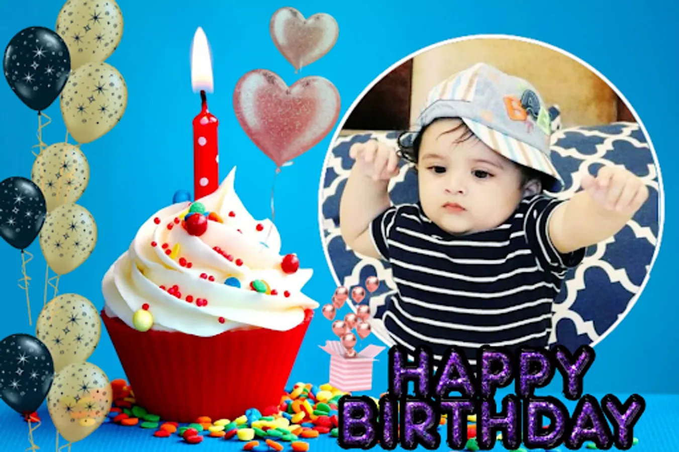 Create Birthday photo Frame with your photos and your loved ones and share them with friends and family to show your love.