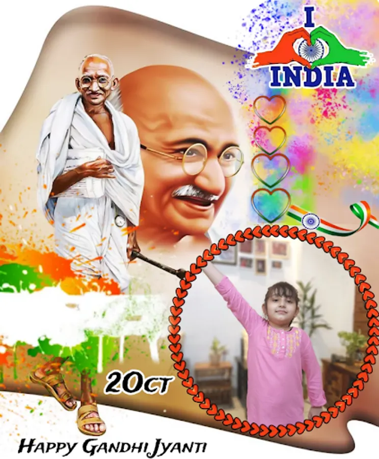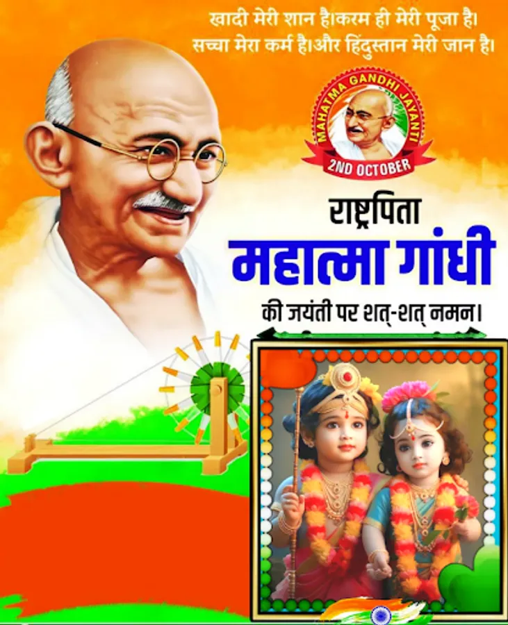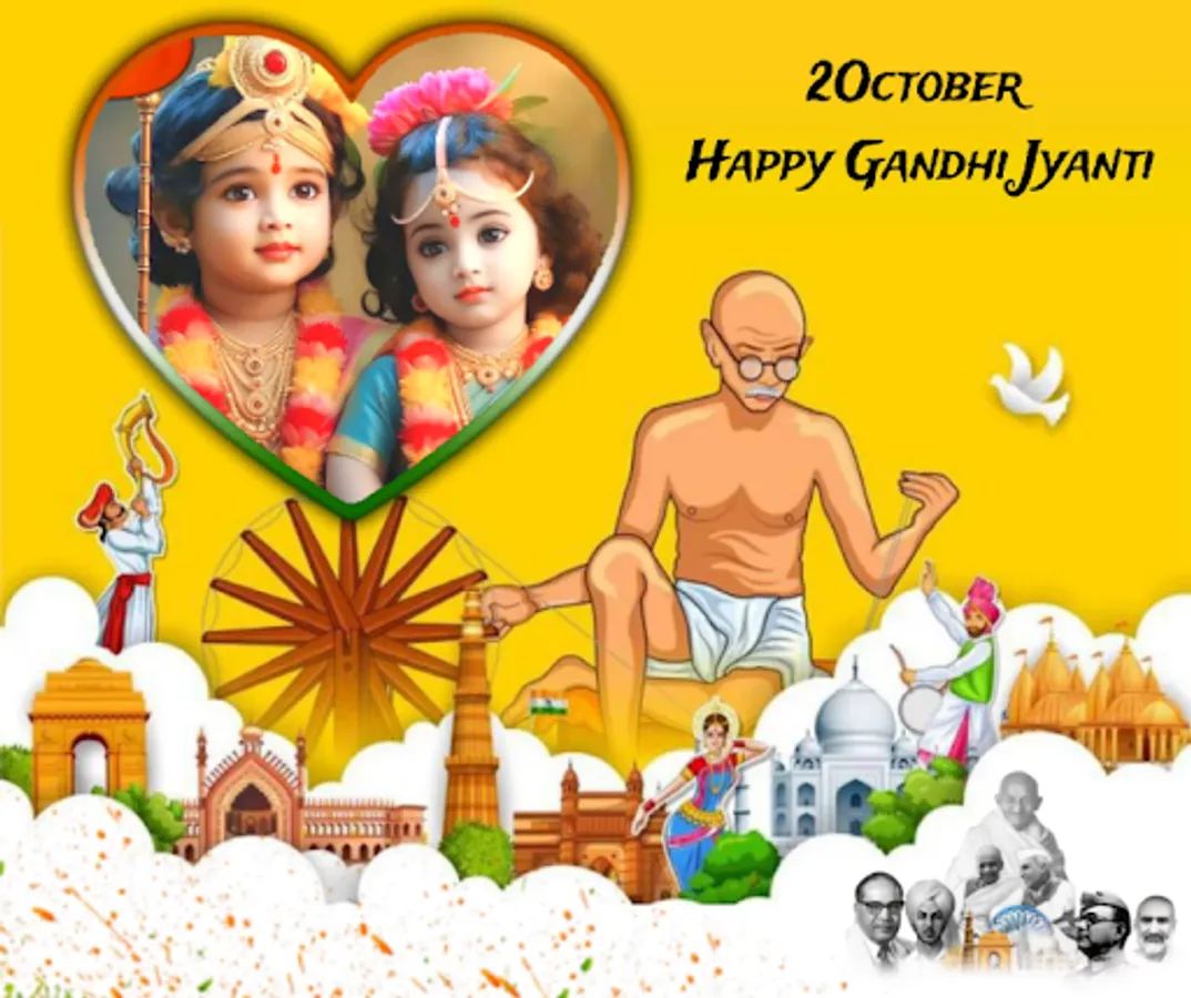 Gandhi Jayanti Photo Editor - Gandhi Jayanti Photo Frame has beautiful Happy Gandhi Jayanti Greetings and Gandhi Jayanti Photo Frames and stickers.