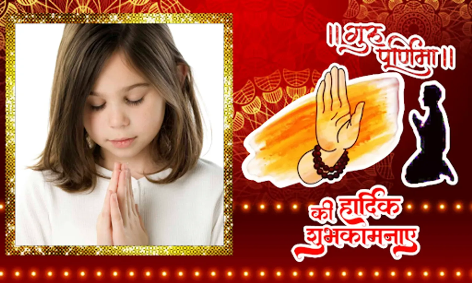 Adjust photographs of your friends into Guru Purnima Photo Frames decorated with stickers and beautiful Guru Purnima Frame and show your creativity.