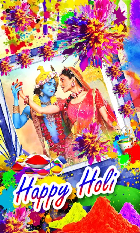Radha Krishna Holi Photo Editor - Holika Photo Frame has beautiful Happy Holi Greetings and Holi Photo Frames and Holi DP Maker.