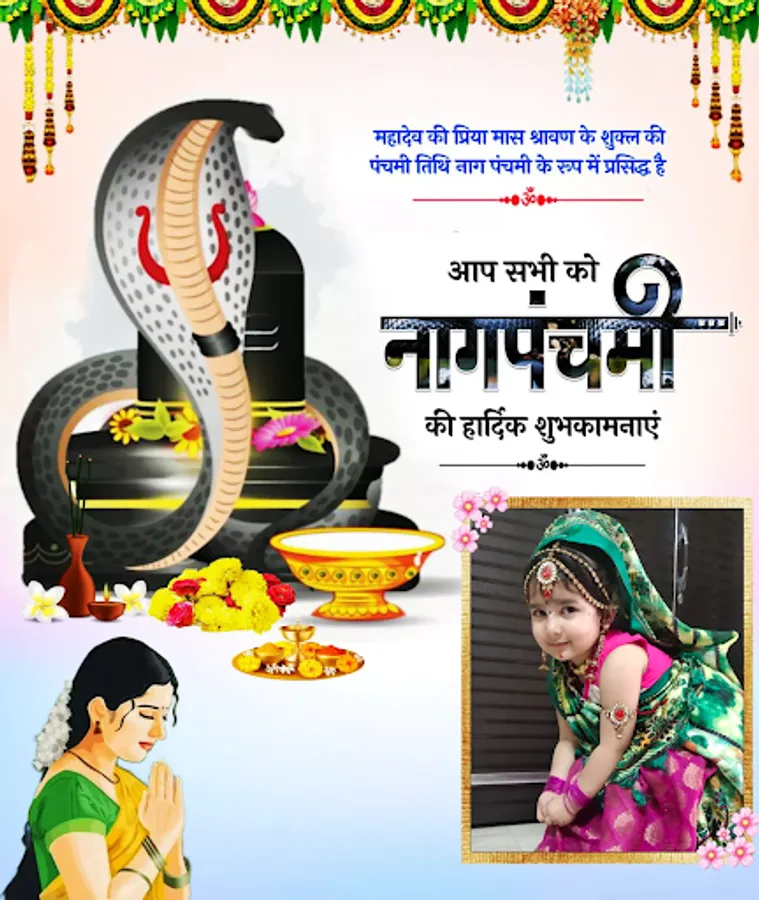Nag Panchami Photo Editor - Nag Panchami Photo Frame has beautiful Happy Nag Panchami Greetings and Nag Panchami Photo Frames and stickers.
