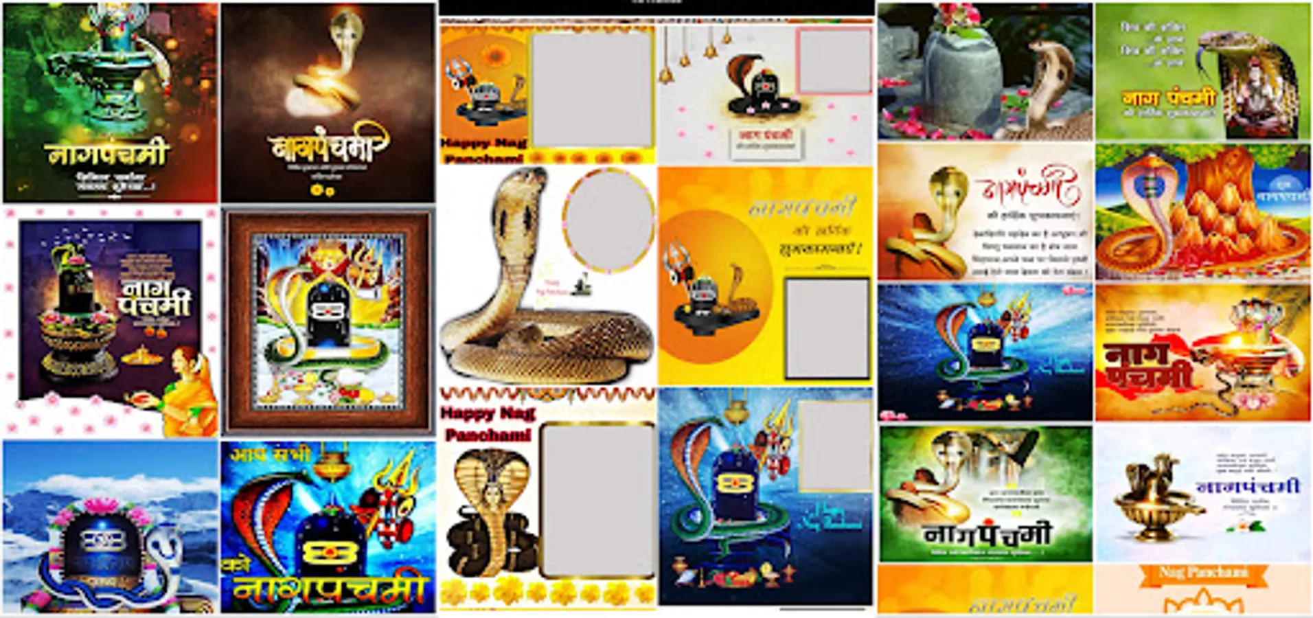 Nag Panchami Photo Editor - Nag Panchami Photo Editor has beautiful Nag Panchami Frames, stickers and greetings. Nag Panchami Frame has more then 80+ Nag Panchami Greetings 2023.