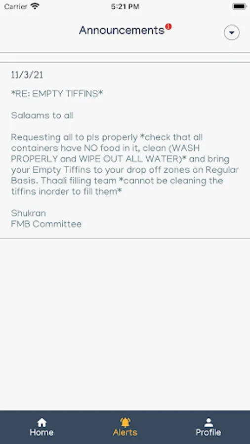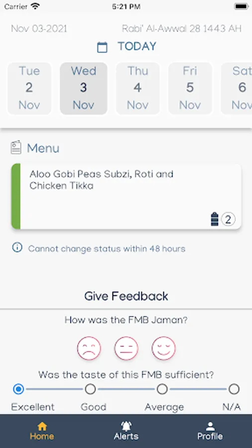 Thaali Menu, Hold Management, as well as Alerts for registered members in Anjuman-e-Burhani NJ