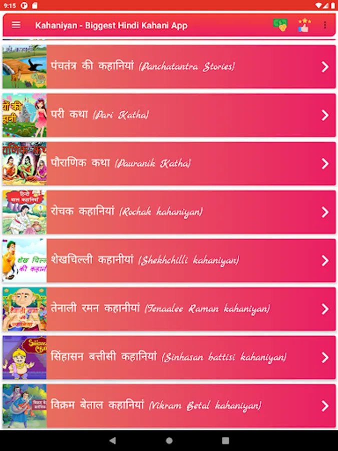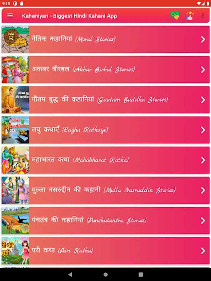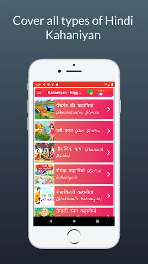 ⚛ kahaniyan - hindi kahani App has stories like Old Stories, Ramayana Kahani, Mahabharat Kahani, Vishnu Puran , Shiv Puran, Budhdha kahani, Shekh Chili, Tenali Rama ki Kahani, Akbar Birbal Kahaniya, Betal Pachchisi, Funny Hasya Kahaniya and many more hindi stories.