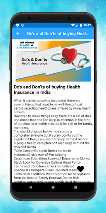 This app provides you with details knowledge about different Medical and Health policies. If you use this app you find different insurance-related knowledge easily without any problem.