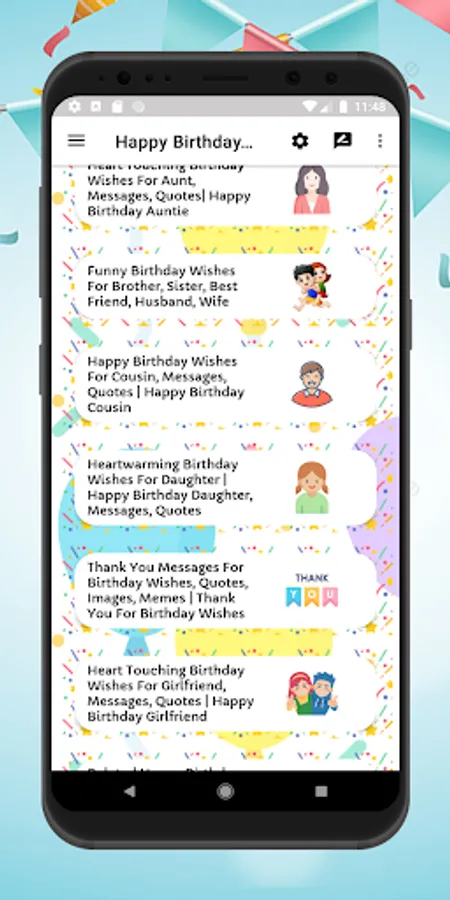 in the Birthday wishes app, you find 24 different useful birthday categories with 2500 birthday quotes & you can easily customize them according to your wish.