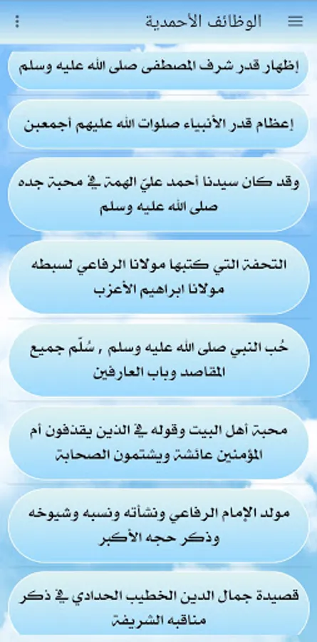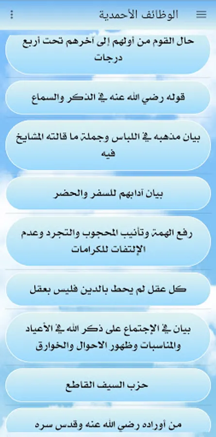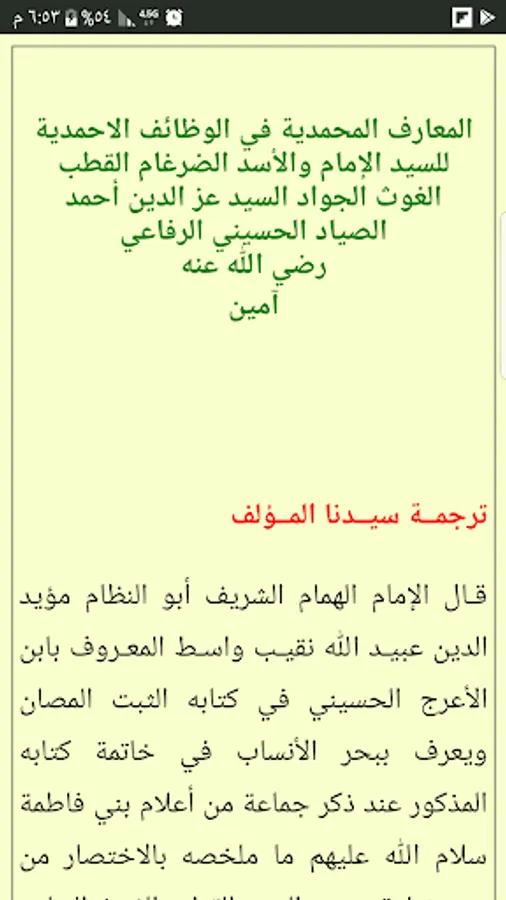 (As for after) the poor servant to God Almighty says Izz al-Din Ahmad bin Abd al-Rahim ibn Saif al-Din Othman bin Hassan bin Muhammad Asalah son of al-Sayyid al-Kabir Abi al-Fawaris Hazim al-Rifai al-Husayni God had him and his parents and Muslims Amen has asked me some lovers to write them briefly about the functions of our method Blessed Ahmadiyya Al-Rifa’i and insisted on the request, so I asked God’s help and wrote this blessed book and named it after he completed (Muhammad’s knowledge in the Ahmadiyya functions). The nation is the thirteenth imams, the best heir, the one who respects the religion, the law, the truth, the truth, the behavior, the method, and the religion. Abu al-Abbas al-Sayyid Ahmad al-Kabir al-Rifai, may God be pleased with him, the son of al-Sayyid Ali Abi al-Hasan Dafin Baghdad, son of al-Sayyid Yahya al-Maghribi, the captain of Basra, son of al-Sayyid al-Thabit, son of al-Sayyid Hazim. Ibn al-Sayyid Ali Ibn al-Sayyid Abi al-Makarim Rafa’a al-Hasan al-Makki Resident of Seville in Morocco Ibn al-Sayyid al-Mahdi Ibn al-Sayyid Abi al-Qasim Muhammad Ibn al-Sayyid al-Hasan Ibn al-Sayyid al-Husayn Ibn al-Sayyid Ahmad al-Akbar Ibn al-Sayyid Mus The second is the son of al-Sayyid Ibrahim al-Murtada, the son of Imam Musa al-Kazim, the son of Imam Jaafar al-Sadiq, the son of Imam Muhammad al-Baqir, the son of Imam Zain al-Abidin Ali, the son of the martyr Imam al-Husayn, peace be upon him, the son of the Imam, the Commander of the Faithful, the father of the tribes of the Prophet, may God bless him and grant him peace, the husband of the Virgin, may God be pleased with them, the cousin of the Messenger The lion of God, our Master and our Master, Ali bin Abi Talib, may God bless him, peace be upon him, came to God, praise and gratitude, a book that was sufficient for this honorable purpose, explaining the provisions of this correct approach and the straight path, indicating the Sunnah of the Ahmadiyya and their satisfactory functions.