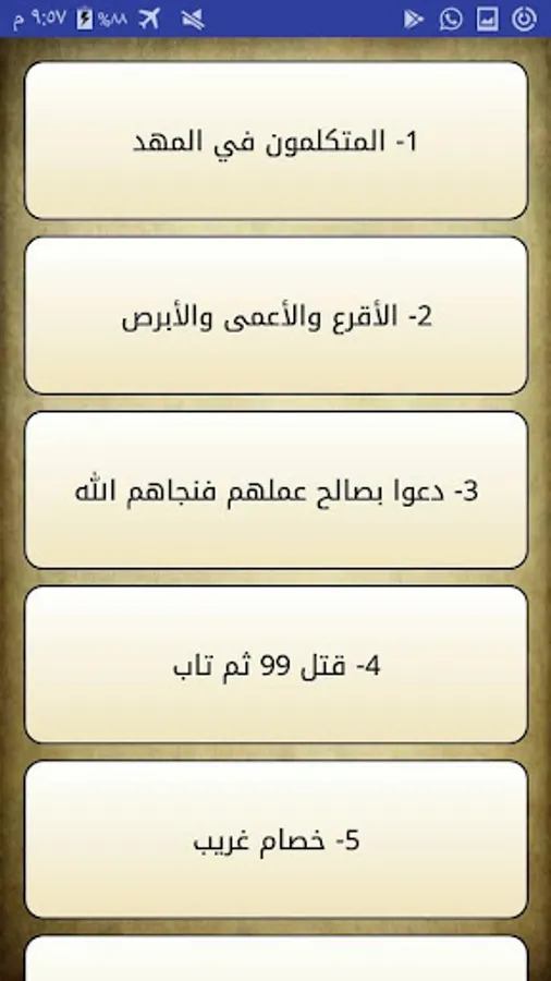 - The application of Islamic stories containing various stories with the source of the source if known with the investigation of the correct stories.