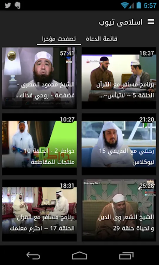 Just choose your favorite Islamic preacher from the list and it will provide you with all his lessons and videos to watch immediately .