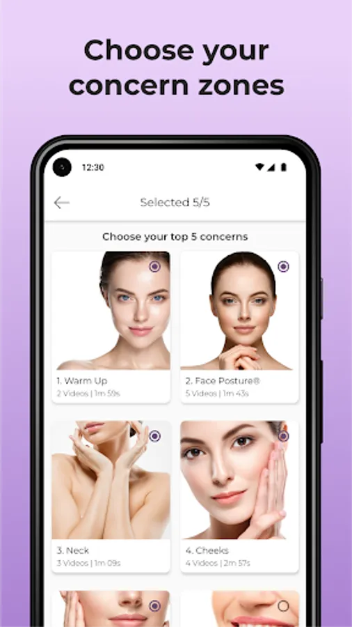 There are approximately (30) core face exercise training exercises with video instructions. Depending on the exercise, our AI technology guides you to move your facial muscles correctly.
