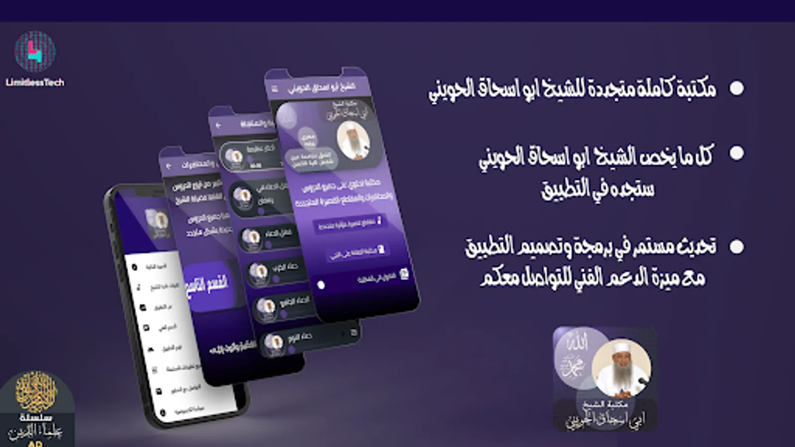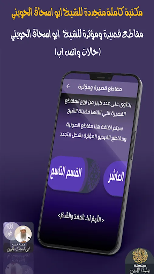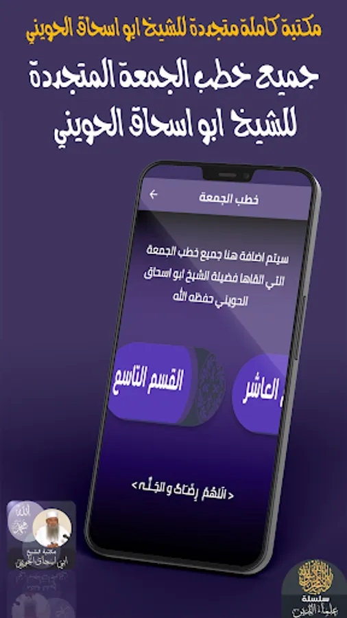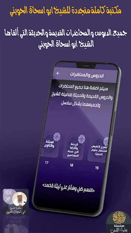 2 The application of the Muhaddith Abu Ishaq Al-Huwaini contains hundreds of influential and periodically renewed lectures and lessons with high quality