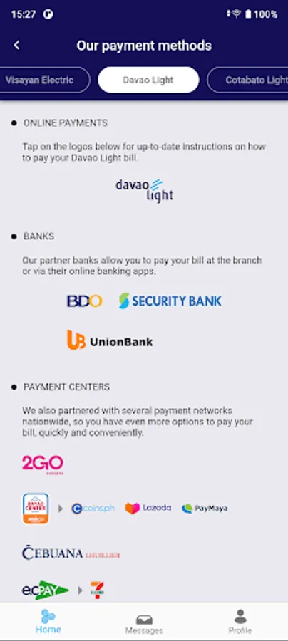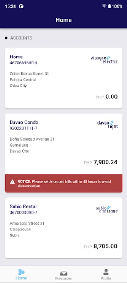 MobileAP is your one-stop utility app for your accounts with Visayan Electric (VECO), Davao Light (DLPC), Cotabato Light (CLPC), Subic Enerzone, and LIMA Enerzone.