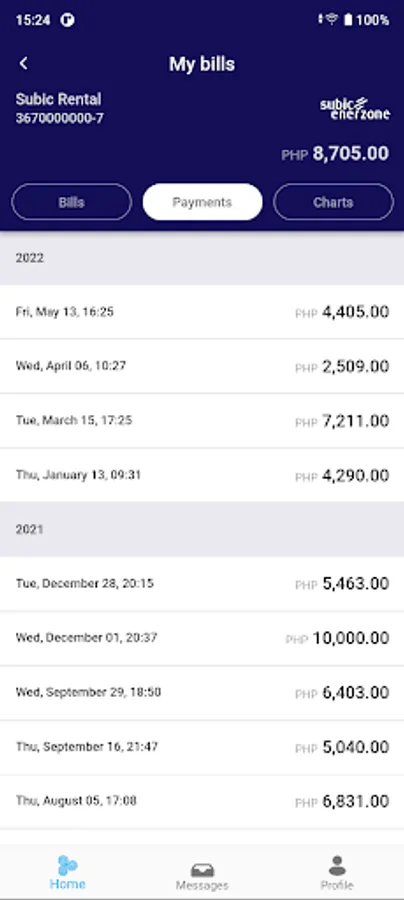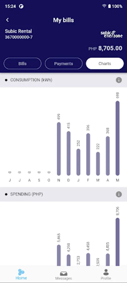 - Track your payments and view charts for consumption and spending