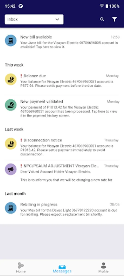 - Receive real-time notifications on new and updated bills, payments acknowledged, warning and advisory messages