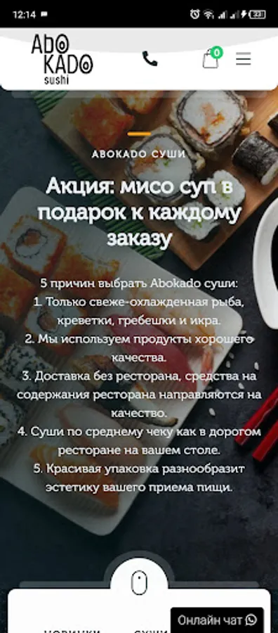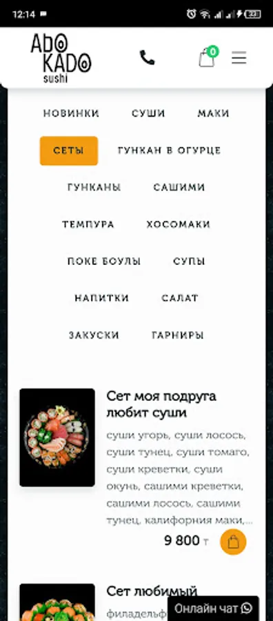 Abokado.kz service - order online through our application with delivery to your home or office in Almaty: sushi, rolls, maki, sets, gunkans in cucumber, gunkans, sashimi, tempura, hosomaki, poke Bowls, soups, drinks, salad, snacks , side dishes.