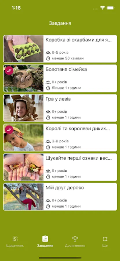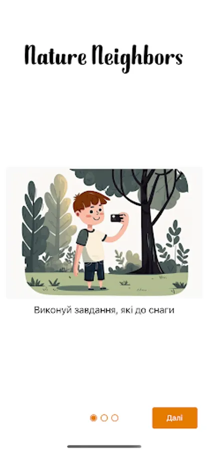 This application allows you to turn completing a series of tasks into an amazing adventure. Each user can choose tasks according to age, seasons and other characteristics. But through the theme of all tasks, there is a "neighborhood with Nature".