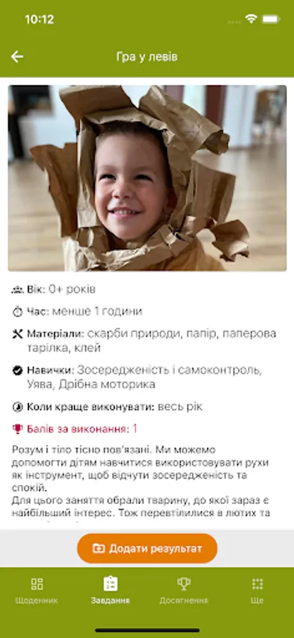 The result of each task is a photo that can be easily taken with a smartphone or tablet camera. The more users complete tasks, the more points they earn and the more animals they win in the "achievements" list.