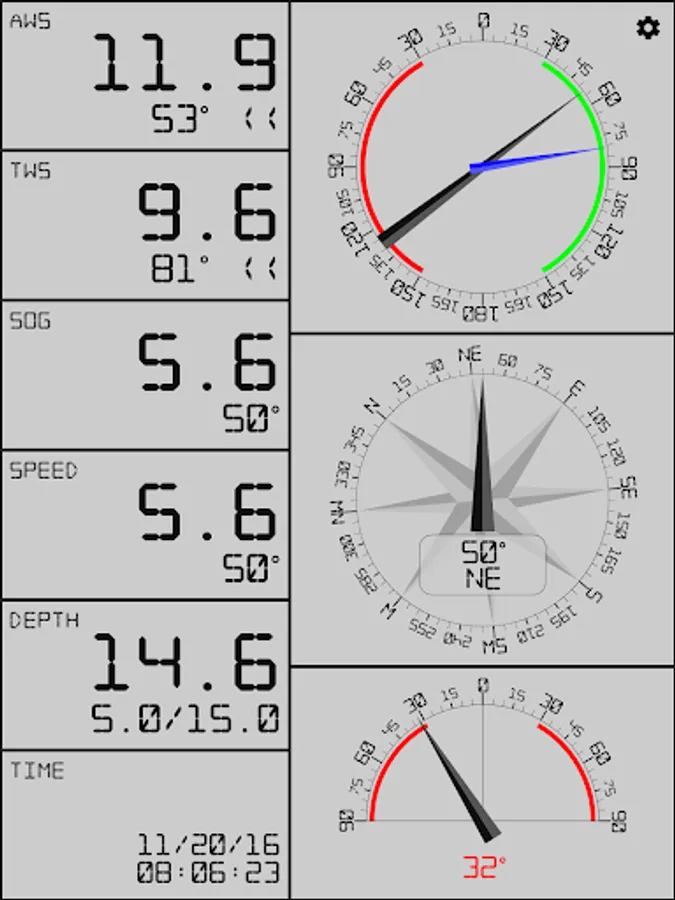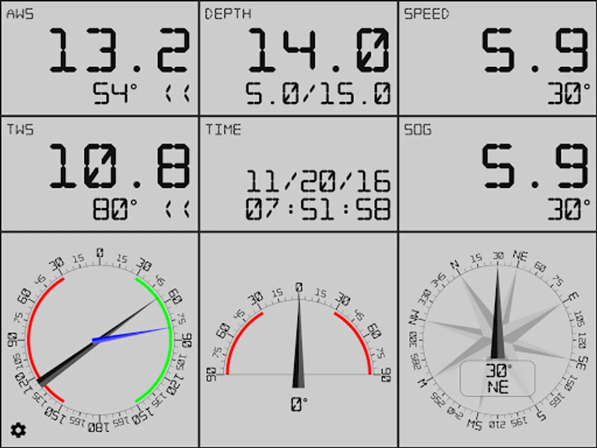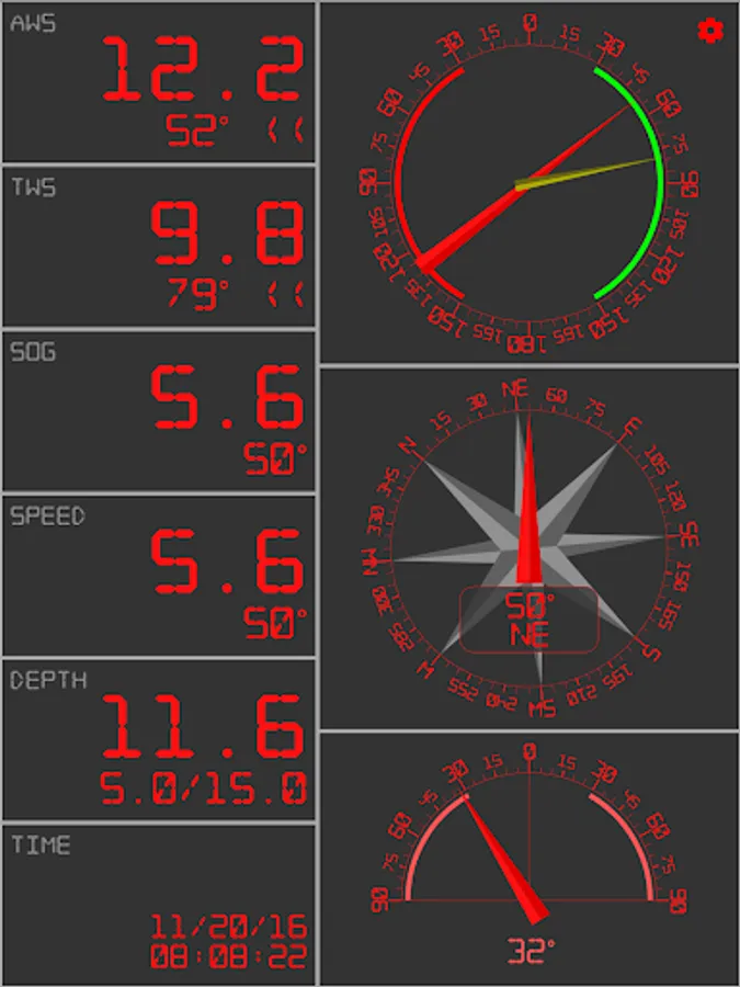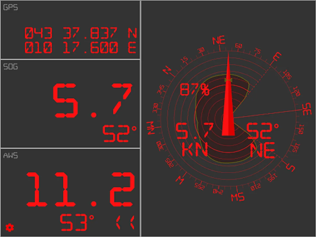 * Wind information (AWS, AWD, TWS & TWS respect to the boat and to North)