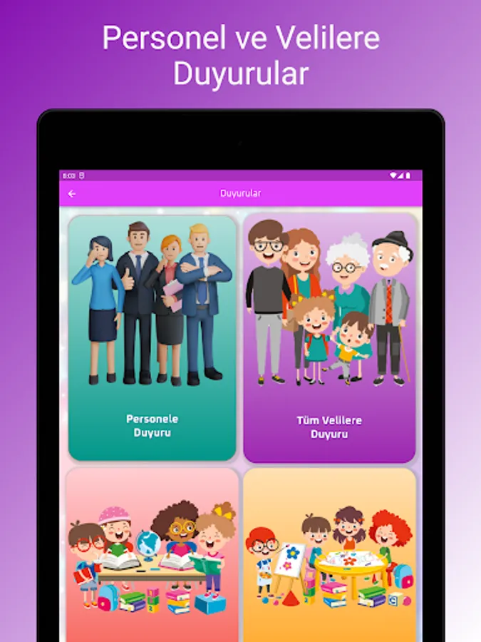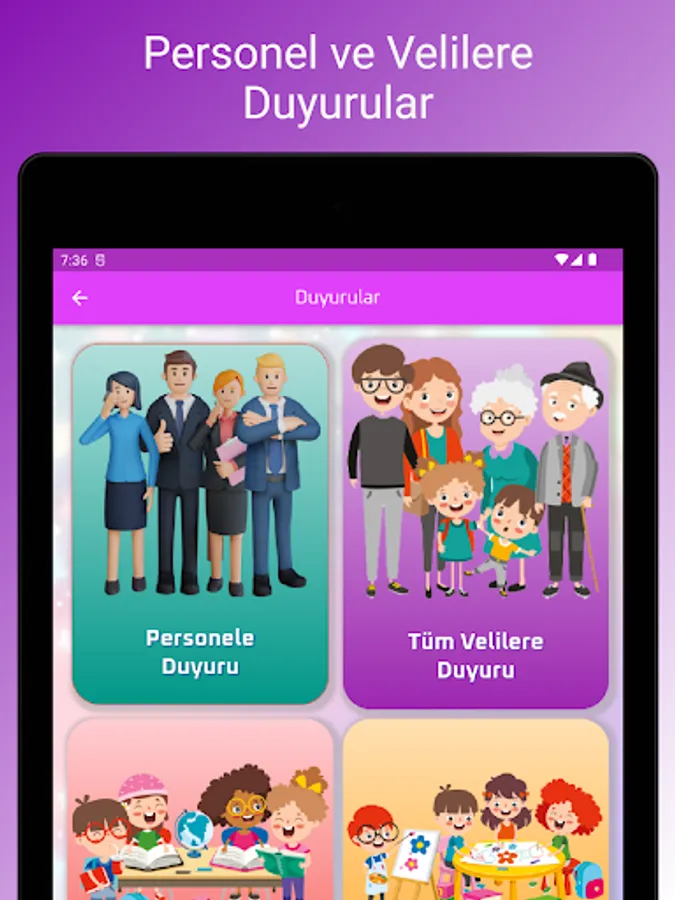 With the Kindergarten Nursery Cepte Mobile Application developed for Pre-School Education Institutions, the communication efficiency between parents and staff is maximized, while time, stationery costs and possible disruptions are minimized.
