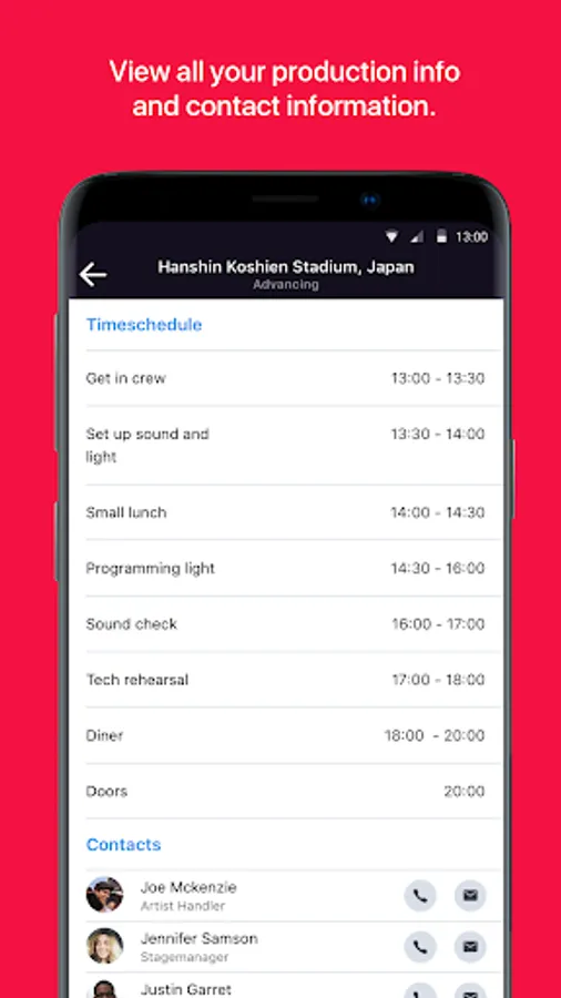 For live shows (ABOSS Agency & ABOSS Artist): all relevant information regarding live shows such as time schedule, contact information, show related files, flights, hotel, ground transportation, deal information and tickets sales. All on a need to know basis.