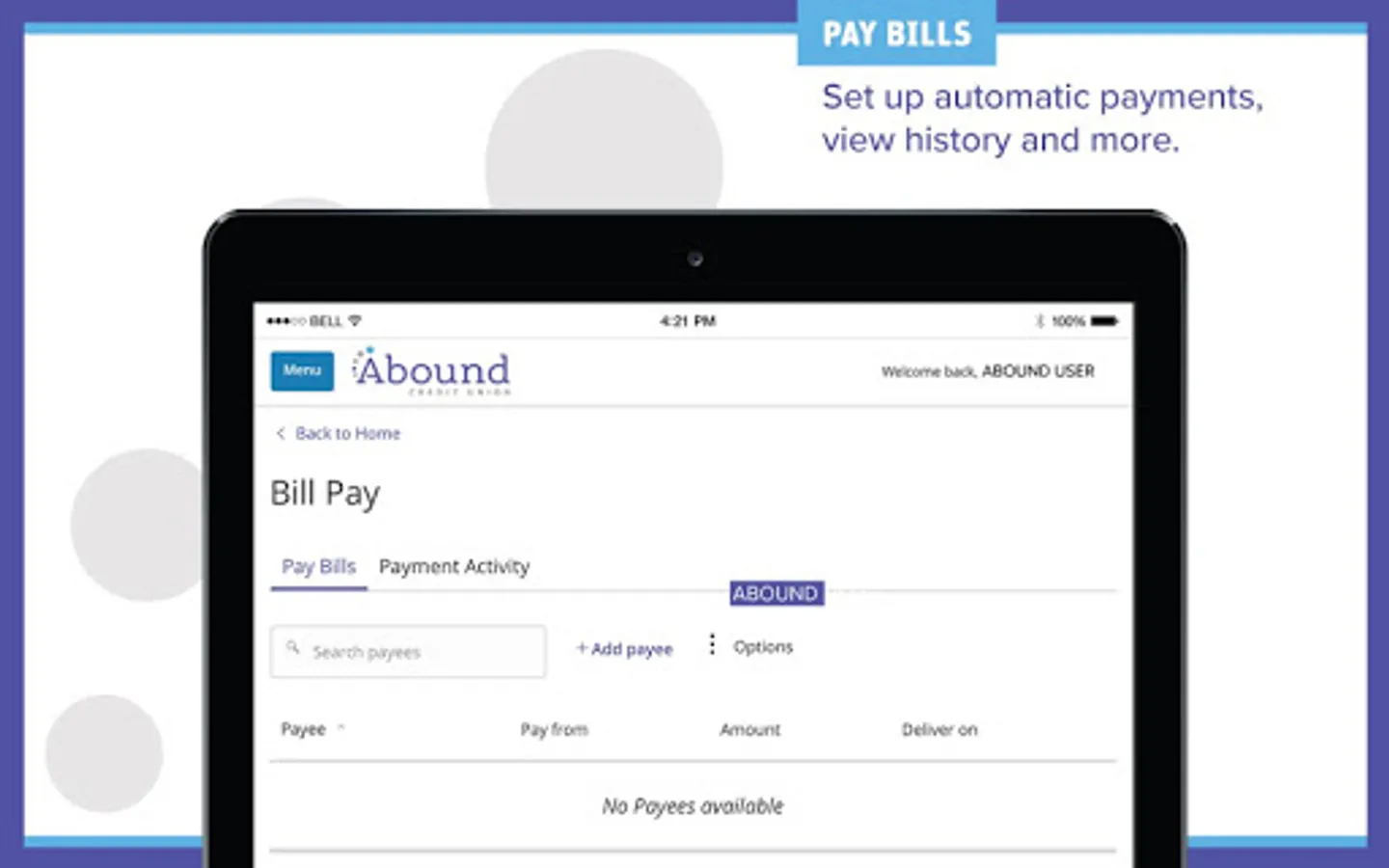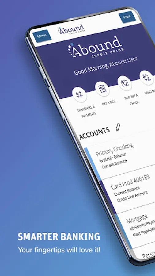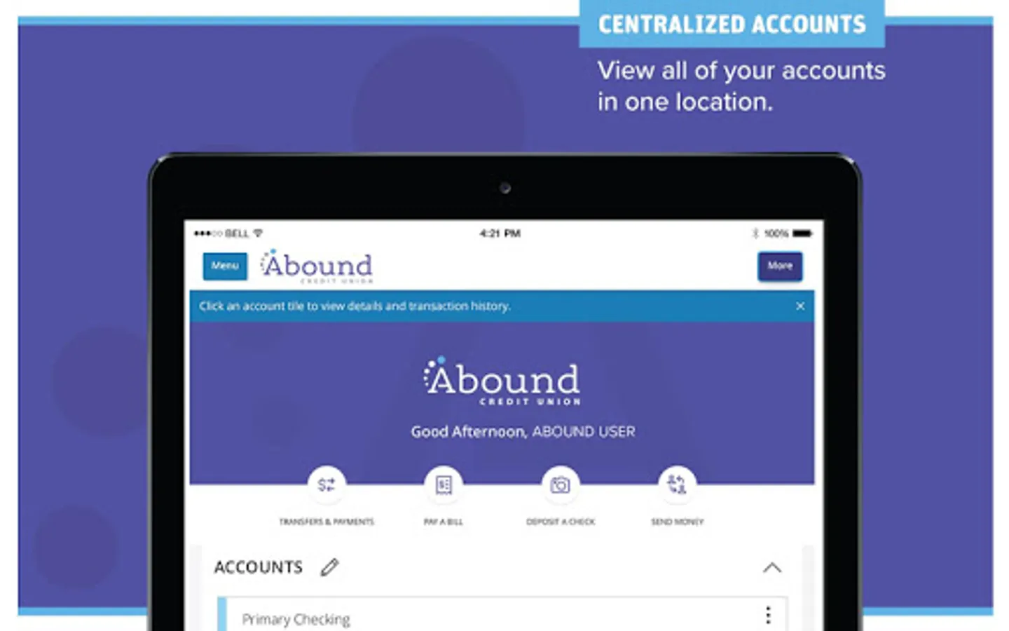 At Abound we believe you deserve more! We work together to bring you simple solutions designed to fit your needs. Abound’s enhanced Mobile app helps you pay your loans, send money, stop payments, touch ID login and more.