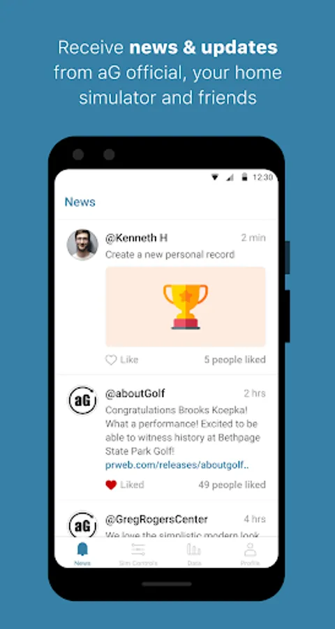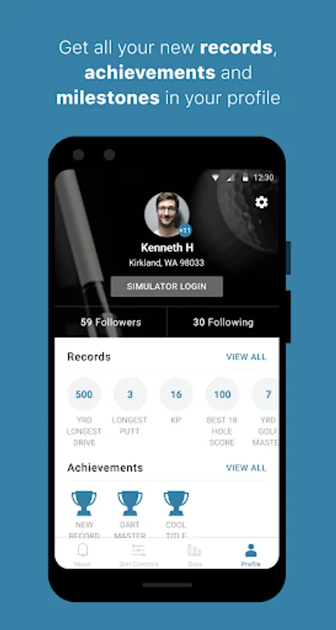 * Friction-free log-in to any aG golf simulator in the world, right from your phone.