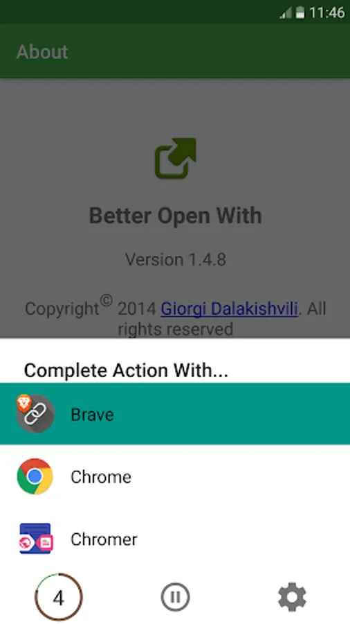 Created to mimic Android's default "Complete action using" dialog, Better Open With shows you a visually similar popup screen when you choose to open a link, an image, a PDF or any other filetype - listing all possible app handlers as you normally see.
