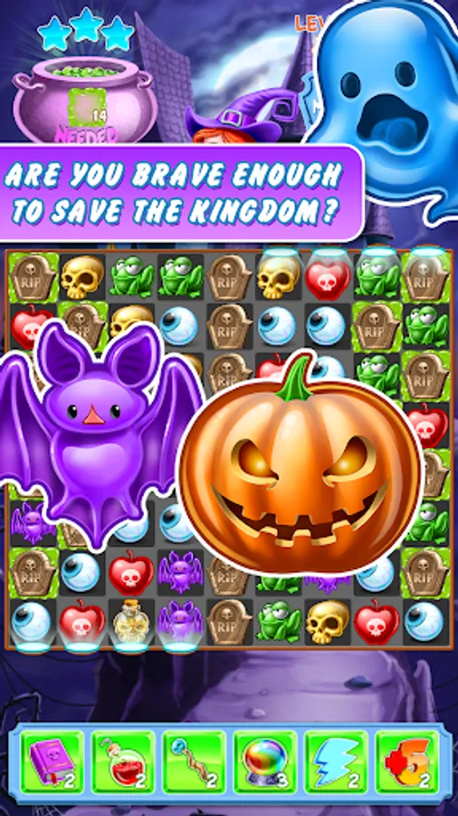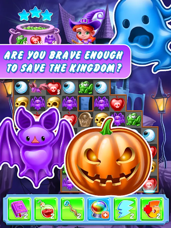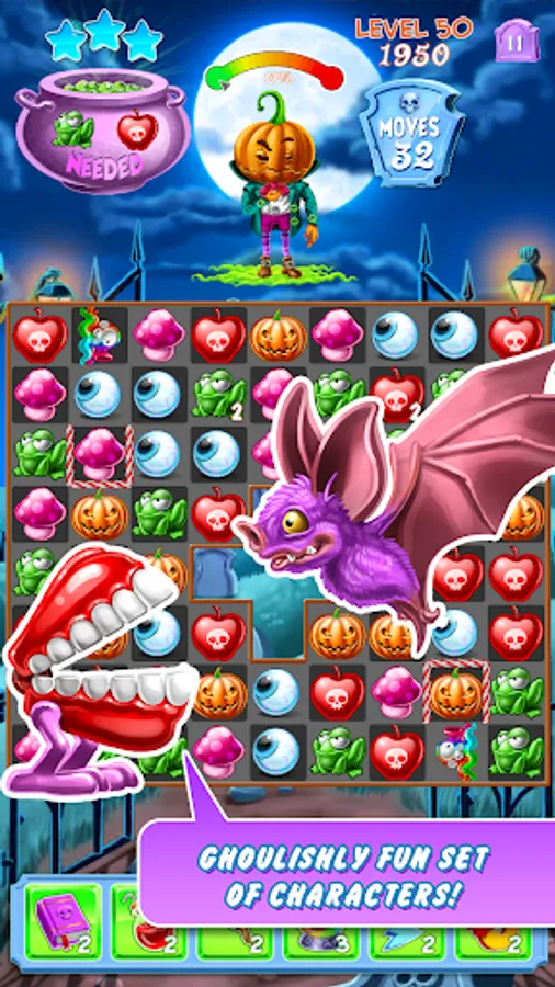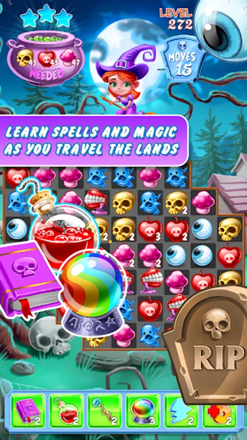 - Make matches to collect spell ingredients: Glancing eyeballs, poisoned apples, magic mushrooms, grumpy frogs, and more.