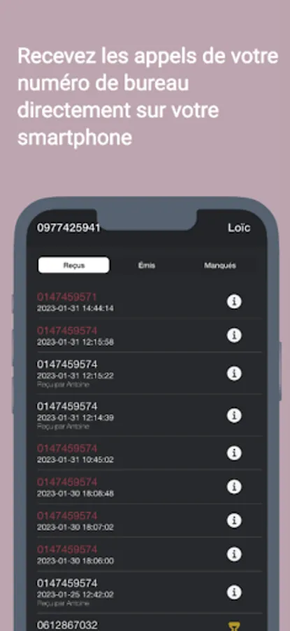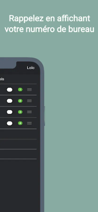 DistriCall is a mobile application that allows you to associate a single number with several available collaborators. We provide you with a single number for your entity and each employee will be able to answer calls, call back a customer by displaying the number provided as well as modify the order of calls as well as their status (available/unavailable). .