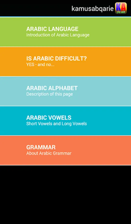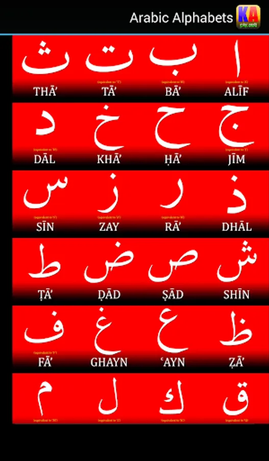 *Terdapat juga pengenalan kepada Arabic Letters/Alphabets
